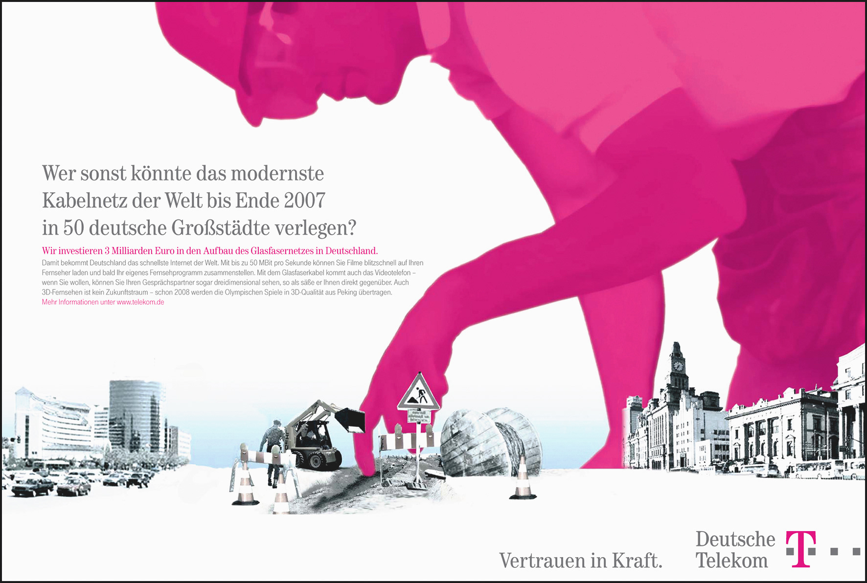 Mit der Kampagne "Vertrauen in Kraft" zeigt die Deutsche Telekom, der Magenta-Riese, welche Möglichkeiten sie durch ihre Kraft hat. Zudem wird deutlich, welche Facetten die Deutsche Telekom bedient.